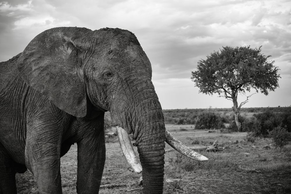 Step into a realm where time seems to stand still, and nature whispers ancient secrets. Unveil "Elephant and Tree," —a monochrome journey where the majestic elephant stands as the enigmatic guardian of a timeless landscape.